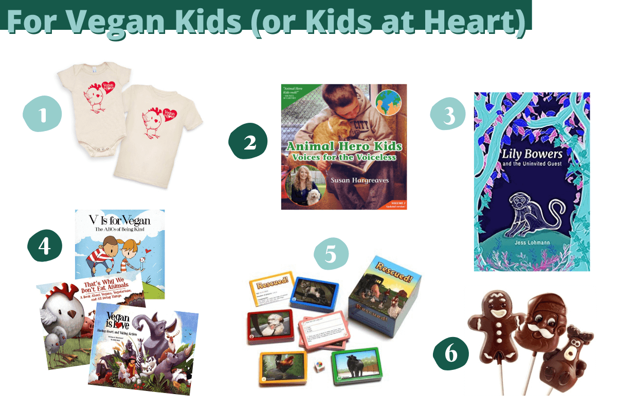 1. Ruby Roth has created a treasure trove of gifts for our compassionate kiddos! How adorable are these Vegan is Love onesies and kids shirts?!