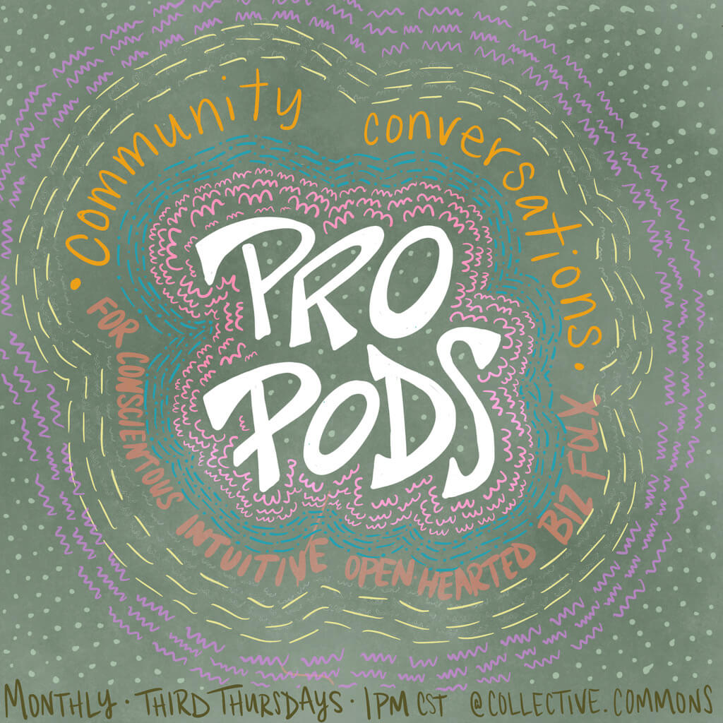 Craving connection? Check out the community groups. Each month there are inclusive personal development (The Commons) and conscientious entrepreneur (Pro Pod) sessions. Both mix together the practical with the mystical.