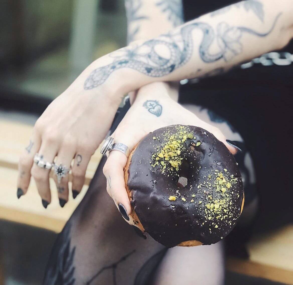 Modern bakery serving vegan donuts with innovative flavors and toppings, coffee and made-to-order cakes.