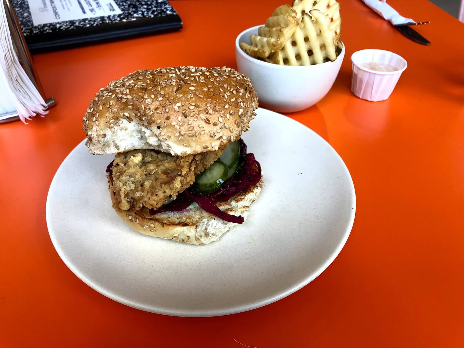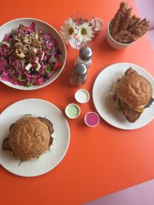 Vegan eatery opened 2018 in Bushwick by the owners of Champs and Screamers. Offers a menu of American classics including burgers and sandwiches, platters and sides like waffle fries. Fast-casual 1970s inspired atmosphere. Open Mon-Sun 11:00am-11:00pm.