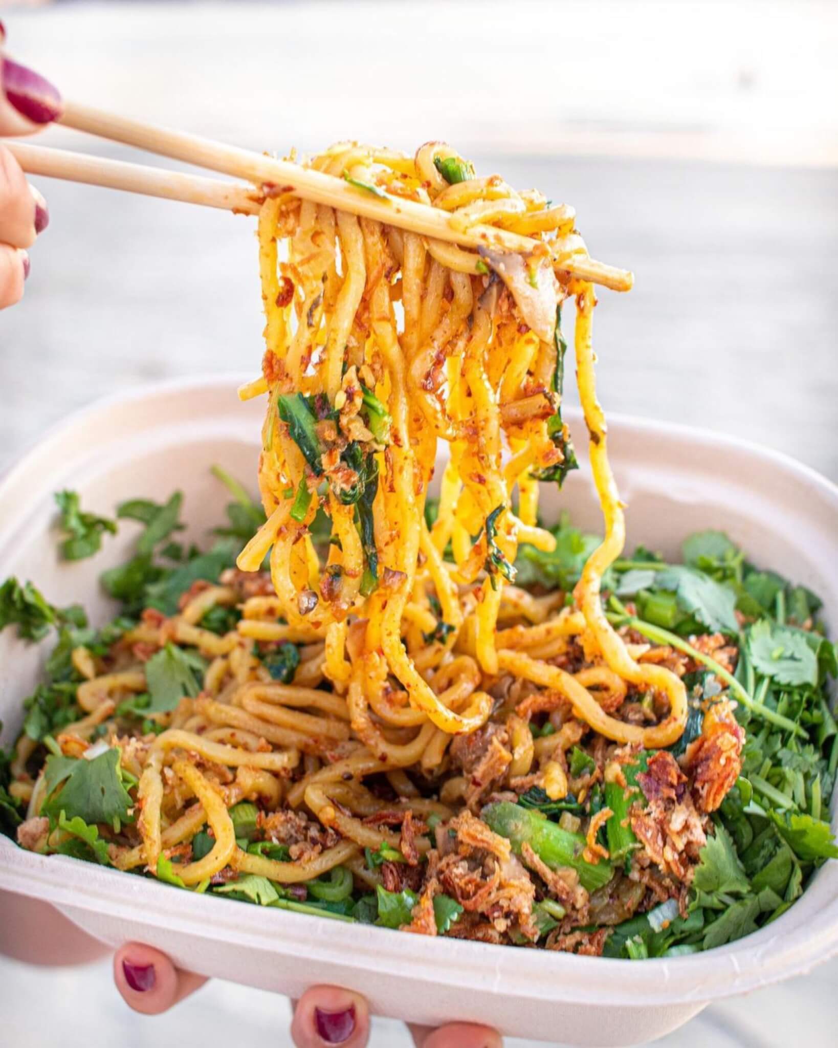 Most known for their Chili Garlic Noods and Fried Shroom Bao, MANEATINGPLANT currently serves their inspired food at various popups around Los Angeles, Orange County, and the Inland Empire.