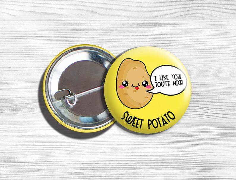 **THIS JUST IN: Most of my pins are now available in 1 inch size. I don't have them all posted yet, so just ask me if there's a pin you'd like in the 1 inch size.