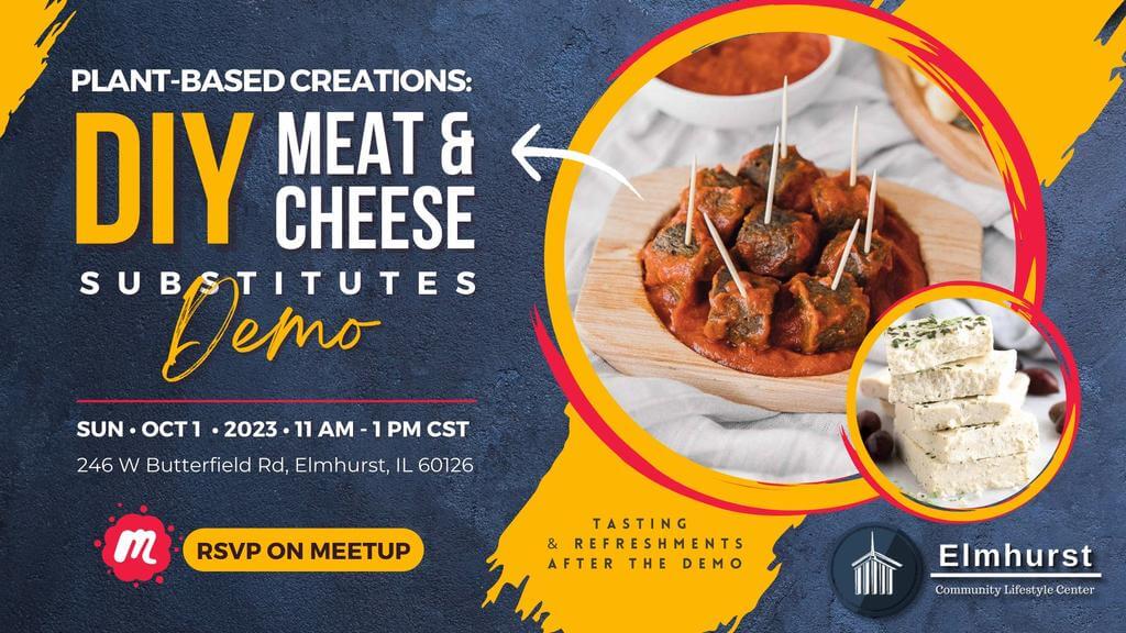 Join us on Sunday, October 1 @ 11 AM at Elmhurst Community Lifestyle Center for an enlightening **demonstration on crafting your own plant-based meat and cheese substitutes right at home**! Dive deep into the world of wholesome, healthy, and affordable alternatives to store-bought substitutes.