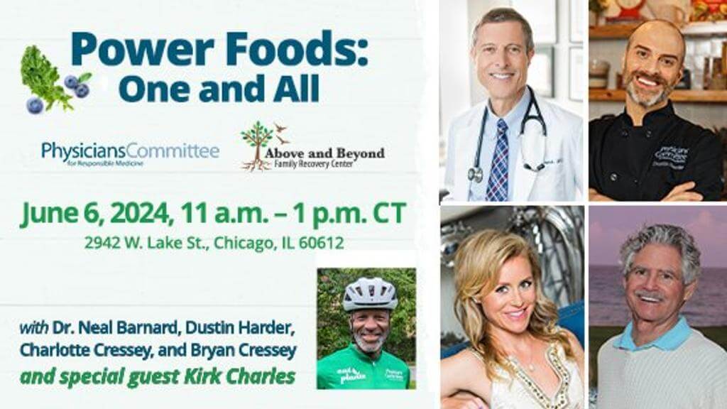 Join us to welcome Physicians Committee President Dr. Neal Barnard who will be in Chicago on Thursday, June 6 to highlight the partnership with Above and Beyond Family Recovery Center with the inaugural event **Power Foods: One and All**.