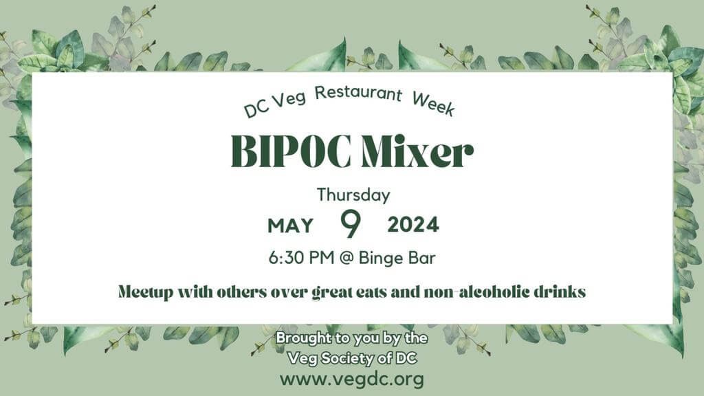 Join VSDC for the Black Indigenous & People of Color (BIPOC) Night of the DC Veg Restaurant Week on Thursday, May 9, at Binge Bar in DC.