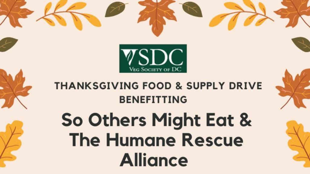 Washington Washington, DC, United StatesThe Veg Society of DC is continuing its Thanksgiving tradition of collecting items for The Humane Rescue Alliance and So Others May Eat (SOME) food bank. If you are interested in donating, please email fooddrive AT vsdc DOT org for the exact drop-off locations and any questions. Drop-offs will be accepted from Saturday, Nov. 19, […]